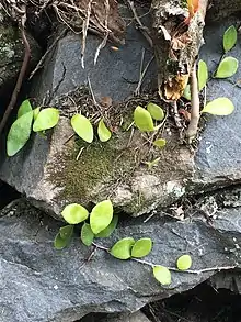- 1 2 3 "Pyrrosia eleagnifolia (Bory) Hovenkamp". Flora of New Zealand. Landcare Research. Retrieved 6 April 2019.