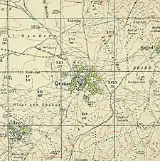 1870s map 1940s map modern map 1940s with modern overlay mapA series of historical maps of the area around Qazaza (click the buttons) | |