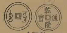 - 1 2 3 4 5 6 François Thierry de Crussol (蒂埃里) (14 September 2015). "Monnaies de l'occupation chinoise (1788-1789) - Qian Long tongbao 乾隆通寶 coins of the Chinese occupation (1788-1789)" (in French). TransAsiart. Retrieved 27 April 2020.