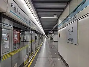 Qibao (simplified Chinese: 七宝; traditional Chinese: 七寶; pinyin: Qībǎo) is the name of an underground station on Line 9 of the Shanghai Metro.[1] It is located in Qibao, Minhang District, near a popular tourist attraction to the south, Qibao Old Town (from Exit 2).