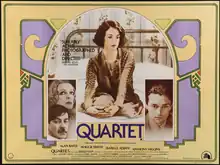 Quartet is a 1981 historical drama film directed by James Ivory from a screenplay by Ruth Prawer Jhabvala, based on the 1928 novel of the same name by Jean Rhys. The film stars Alan Bates, Maggie Smith, Isabelle Adjani and Anthony Higgins, and is set in 1927 Paris. It premiered at the 1981 Cannes Film Festival.