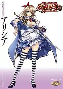 - ↑ クイーンズブレイド グリムワール 不思議の国の闇使い アリシア (in Japanese). Amazon.com. Retrieved October 23, 2012.