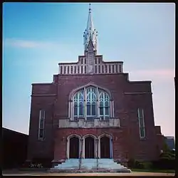 Queen Street Baptist Church is a historic African-American Baptist church located at Norfolk, Virginia. It was built in 19101911, and is a rectangular one-story brick church in the Late Gothic Revival style. The façade and side elevations have Gothic pointed arch windows and the church is topped by a spire that rests atop the roof at the façade. An educational annex was built in 1952, and expanded in 1957. The Queen Street Baptist Church congregation dates to 1884.[3]