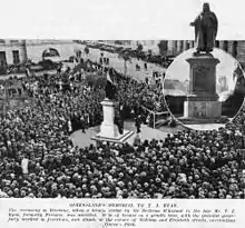 A bronze statue of TJ Ryan, designed by Australian sculptor Bertram MacKennal and erected by public subscription, was unveiled in the gardens in 1925. The sandstone base was provided by the Brisbane City Council.[1]