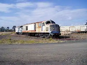 In 1984, 1208 was rebuilt using parts from 1250 class locomotives 1252 and 1253, including a more powerful 1,145 kW (1,540 hp) engine to replace the original 962 kW (1,290 hp) EE 12SVT engine, while the body was modified to resemble a 1250 class. It earned the nickname "Hybrid" after this work and was renumbered 1225. It also resembles the Brazilian RFN Class 700. It remained in service until 1987, based at Toowoomba working mainly on the Southern line. The loco is now privately owned and is currently stored at Queensland Pioneer Steam Railway (QPSR) at Swanbank Queensland since it was moved there in mid-2010. QPSR now want it out of their premises so now its future is uncertain.[2][4][5]