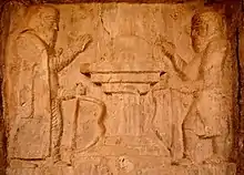 The symbols of the tomb refers to Mithraism,[10] with Mithra being the supreme deity of Medes.[2] Some scholars such as Igor Diakonov believe that the tomb was built for the Median ruler Huvaxshatra or Cyaxares.[11] if the Qyzqapan tomb is a royal one (which is very likely) the warrior is none other than Cyaxares.[12]