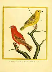 1765 plate showing Foudia bruante (below), which may instead be a colour morph of the red fody.