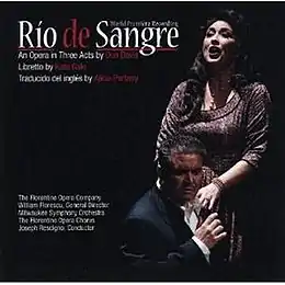 Río de Sangre is a Spanish-language opera in 3 acts and 14 scenes by the film score composer of the Matrix trilogy, Don Davis. Kate Gale wrote the original English prose libretto which was translated into Spanish by Alicia Partnoy. Commissioned by the Florentine Opera Company, the work premiered in October 22, 2010 in a production starring soprano Kerry Walsh and tenor John Duykers. The original cast recorded the opera for Albany Records in 2010. The opera is set in an unnamed South American country with a story centering on political intrigue and family tragedy. The role of its main character, Christian Delacruz, the country's newly elected president, was sung by Guido LeBron.[1]