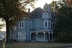 The R.E. Lee House is a historic house at 1302 West 2nd Street in Pine Bluff, Arkansas. It is a 1+12-story wood-frame structure, with asymmetrical massing and complex roof line characteristic of the Queen Anne period of architecture. The house is set on a lot with an original period wrought iron fence. A three-story corner tower with bellcast six-side roof projects from one corner, with an elaborately decorated Eastlake-style porch sheltering its entrance. Built in 1893, it is an outstanding local example of the Queen Anne style.[2]