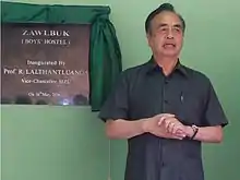 ![]() R. Lalthantluanga inaugurates Zawlbuk, a boys' hostel at Pachhunga University College on 16 May 2016 | |