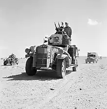 In 1924 Numbers 3 and 4 Companies were combined. In April 1927 Numbers 4, 5 & 6 Companies were disbanded with the formation of the armoured car wing at RAF Hinaidi Cantonment composed of 8 sections of armoured cars. Four sections were based at Hinaidi, one at Basrah, two at Kirkuk and one at Mosul. In April 1930 the Armoured Car Wing was disbanded and reconstituted as Number 1 Armoured Car Company RAF with headquarters, workshops and two sections based at RAF Hinaidi Cantonment, one section based at RAF Basrah and one at RAF Mosul.[1][5] In 1937 1 ACC moved from the RAF Hinaidi Cantonment to a new base at RAF Dhibban (renamed RAF Habbaniya on 1 May 1938), where it remained based until disbandment and incorporation into the RAF Regiment, on 3 October 1946.