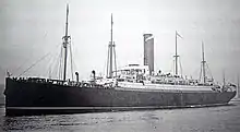 A cropped copy of the photograph of HMTS Saxonia in 1900.