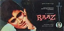 Raaz (lit.'Secret') is a 1967 Hindi romantic thriller movie directed by Ravindra Dave. Produced by G. P. Sippy for Sippy Films, the story was written by C. J. Pavri.[1] The film stars Rajesh Khanna, Babita, I. S. Johar and Asit Sen. The film's music is by Kalyanji Anandji. Rajesh Khanna and Babita are introduced in this film. Khanna's performance in this film was critically appreciated.[2]