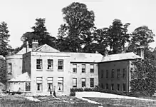 Radford was later inherited by a branch of the Bulteel family of Flete in the parish of Holbeton, Devon, which changed its name to Harris-Bulteel. Their tenure ended in debt, fraud and imprisonment. The earliest recorded ancestor of the Bulteel family in England is Samuel Bulteel (died 1682) of Tavistock in Devon, a Huguenot refugee from France, whose son was James Bulteel (1676–1757) of Tavistock, MP for Tavistock 1703-8 and 1711–15,[28] who married Mary Crocker, daughter and heiress of Courtenay Crocker (died 1740), MP, of Lyneham in the parish of Yealmpton, Devon, the last male of the senior branch of the ancient Crocker family. Another possible relative was John Bulteel (died 1669), MP for Lostwithiel, Cornwall in 1661 and 1669, a friend of Samuel Pepys and secretary to Edward Hyde, 1st Earl of Clarendon, and cousin of John Bulteel the writer and translator.[29] James Bulteel inherited the estate of Fleet (alias Fleet Damarell), one of the finest estates in Devon,[30] under the will of Richard Hele (died 1709) of Flete,[31] who was no blood relation. James's son was John Bulteel (1733–1801), who in 1757 purchased the estate of Membland, in the parish of Holbeton.[31] Membland, in about 1877, and the manor of Revelstoke were purchased by Edward Baring (1828–1897), who in 1885 was elevated to the peerage as "Baron Revelstoke of Membland". He was senior partner of Barings Bank, which had originated in nearby Exeter, Devon. In 1861 he had married Louisa Emily Charlotte Bulteel (died 1892), a daughter of John Crocker Bulteel (1793–1843) of Fleet, Holbeton, the adjoining estate, MP for South Devon 1832–4 and Sheriff of Devon in 1841. Thus the two banking dynasties of Baring and Bulteel, both founded in Devonshire and both destined for ignominious collapse, became linked.