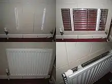 A radiator reflector is a thin sheet or foil applied to the wall behind, and closely spaced from, a domestic heating radiator. The intention is to reduce heat losses into the wall by reflecting radiant heat away from the wall. It is a form of radiant barrier and is intended to reduce energy losses and hence decrease fuel expenditure.