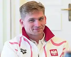 Radosław Kawęcki (born 16 August 1991) is a Polish competitive swimmer who specializes in backstroke events. Kawęcki won the silver medal in the 200 m backstroke at the 2013 and 2015 World Aquatics Championships, and was twice the 200 m backstroke short course world champion. He won four gold medals at the FINA World Swimming Championships in the 200 m backstroke. He is an 8-time European champion in the backstroke events. Kawęcki finished fourth at the 2012 Summer Olympics in London in the 200-meter backstroke.[2] He currently represents the Cali Condors which is part of the International Swimming League.