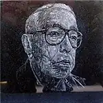 Hand etched portraits on black granite of Pietri, in youth and old age, by Osvaldo Torres (Cruzacalles),