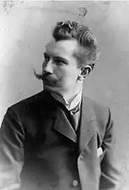 His first major showing was at the Glaspalast in 1893, where he was nominated for a gold medal. Three years later, he was awarded one there. He also won a gold medal at the Saint Louis Exposition of 1897. At the suggestion of the art historian, Wolfgang von Oettingen, he entered a competition to select an artist for ceiling paintings at the Reichstag building.[3] He was one of three selected. Much of the work was done in Munich; creating canvases that would be set into the ceiling. In 1904, he moved to Berlin to see his commission through to its completion and dedication, which took place in 1911, and he would live there until 1941.[1] He was appointed a Professor of Composition at the Prussian Academy of Art shortly after the dedication; a position he held until 1920. He was named a full member of the academy in 1914.[4]