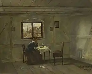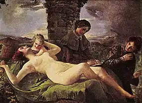 Following the rise of the Nazis, his older, sometimes mythological styles found favor with the party's supporters, and he was commissioned to do several female portraits. These included Winifred Wagner, Cosima Wagner and Emmy Göring.[5] He was awarded the Goethe-Medaille für Kunst und Wissenschaft in 1940, and his works were featured at the Große Deutsche Kunstausstellung of 1941. Hitler bought one for 60,000 ℛ︁ℳ︁.[4] Shortly after, he moved to the safety of a remote location in Bavaria where he died, ten years later.
