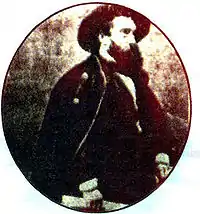 Raffaello Carboni was born in Urbino, Italy in 1817. Dedicated to the cause of Italian nationalism, he fought with the forces of Mazzini and Garibaldi to free Italy from Austrian influence. After the fall of the Roman Republic (1849–1850), he fled to London and then to Melbourne, Australia. He arrived on the Ballarat goldfields in 1853, and became a member of the miners' central committee. By the time of the Eureka Stockade he had been on or around the goldfields for almost two years. On 30 November 1854, he called on all miners "irrespective of nationality, religion or colour to salute the Southern Cross as a refuge of all the oppressed from all countries on Earth." When the stockade was attacked on 3 December 1854, he remained a spectator.[1] He was, however, arrested and tried for treason, but later acquitted in March, having been taken ill with dysentery in gaol. In July 1855 Carboni was elected to the local court at Ballarat to adjudicate mining disputes. His book, The Eureka Stockade, the only complete first-hand description and analysis of the causes of the attack on the Eureka Stockade, was published a year after the uprising.