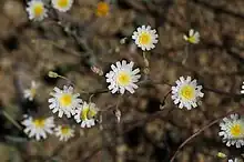 Rafinesquia californica is a species of flowering plant in the family Asteraceae known by the common names California chicory and California plumeseed. It looks like a weedy daisy, bearing heads of elegant white-petaled flowers. The ligules of the flowers are often striped with lavender or pink on the undersides, a feature most noticeable when the heads are closed. Each fruit has a pappus of stiff white or light brown hairs.