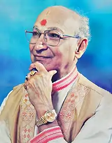 'Suramani' Pandit Raghunath Panigrahi (Odia: ରଘୁନାଥ ପାଣିଗ୍ରାହୀ, romanized: Raghunātha Pāṇigrāhi; 10 August 1932 – 25 August 2013) was an Odissi music Guru, vocalist, composer and music director.[1] He is most known for his renditions of Jayadeva's Gita Govinda and his vocal support for his wife, the Odissi danseuse Sanjukta Panigrahi. Raghunath belonged to a family associated with Odissi music for centuries, members of which were 19th-century Odissi poet-composer Sadhaka Kabi Gourahari Parichha and Gayaka Siromani Apanna Panigrahi who was the royal musician (raja-sangitagya) of Paralakhemundi.[2] He started his musical training from his father Pt Neelamani Panigrahi, who had been collecting traditional Odissi melodies of the Gita Govinda from the Jagannatha Temple of Puri.[3] Later, Raghunath continued learning Odissi music under Pt Narasingha Nandasarma and Pt Biswanatha Das.[4] He was widely known as 'Gitagobinda Panigrahi'.