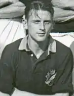 At IK Sture, Blom impressed and got discovered by Per Kaufeldt, a former Swedish national player and current manager of Hammarby IF.[1] In 1943, he made his debut for the club in Division 2, Sweden's second tier.[2] Blom impressed at Hammarby and became known as a hard-working, fast-paced and versatile right-back, who also was a set piece specialist.[1]