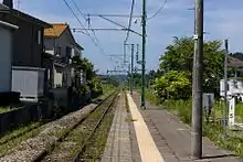 The station consists of a single ground-level side platform serving one bi-directional track, connected to the station building by a level crossing.