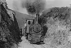 Two Japanese narrow-gauge diesel locomotives were photographed on 5 October 1944, while being placed on wooden beams at the airfield on the Orote Peninsula in Guam. They were used as cover during the Landing of US-American troops and thus severely damaged. It is not known, whether they were previously used for rail transport or had only just been delivered shortly before the landing of the US-American troops.[8] There are no railway tracks shown on the peninsula on maps of that period of time.[9][10]