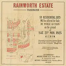 Originally there was a house with large lands on Boundary Street, Rosalie (now Toowong), called "Rainworth" owned by Sir Augustus Charles Gregory, Surveyor-General of Queensland; it was named after the town of Rainworth near his birthplace in Nottinghamshire, England.[4] After his death in 1905, the house and land were sold.