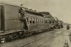 The second train was trying to make up time, and should have stopped short of the Rakaia station. But the driver (Charles Carter) did not brake until he saw the hand-held light of a station clerk, and the brakes skidded on the wet rails. The guard (J. Curson) of the first train saw the second train approaching fast, and signalled the drivers (William Hyland and Gardiner) to move the first train. Though the first train only had time to move two coach lengths, this reduced the damage. The engine of the second train ploughed into the back of the guard's van of the first train, causing it to cut 14 feet (4.3 m) into the next carriage while the third carriage mounted the second carriage to a distance of about 8 feet (2.4 m).