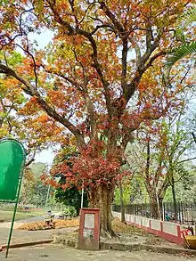 Schleichera oleosa (Bengali - Kusum) in Ramna Park, in spring young leaves bloom in various red shades.