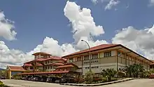 Ranau is noted for its hilly geographical structure and is the largest producer of highland vegetables in the state of Sabah.[6] Tourism and highland agriculture are the major industries, as the district is at an altitude of 1,176 m above sea level.[4] Its many tourist destinations attracted half a million tourists in 2009.[7] These include Mount Kinabalu (the tallest mountain on Borneo), Kinabalu Park, Poring Hot Springs, Kundasang War Memorial, Death March Trail, Mesilau, and Sabah Tea Garden. Ranau's diverse flora ranges from rich tropical lowland and hill rainforest to tropical mountain, sub-alpine forest and scrub on the higher elevations and particularly abundant in species with examples of flora from as far as China, Australia and the Himalayas, as well as pan-tropical flora.[8]