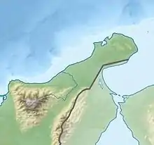 The Ranchería River (Spanish: Río Ranchería) is a river located in northern La Guajira Department, Colombia. Born in the Sierra Nevada de Santa Marta southern steps flows south, abruptly turns northeast and then north where it finally flows into the Caribbean Sea.[2] It is the main river of La Guajira Department and has great significance for the Wayuu people.