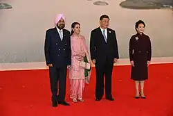 Singh (left) and his wife Vinita (centre left) with Paramount leader and Chinese President Xi Jinping (centre right) and his wife, First Lady of the People's Republic of China Peng Liyuan (right), in 2023, in Hangzhou