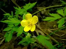 Ranunculus septentrionalis, the swamp buttercup, is a species of buttercup found in North America from New Brunswick to Manitoba and from Georgia to Kansas.[1] Although some authors treat it as a distinct species,[2] others consider it to be a subspecies of Ranunculus hispidus.[3][4]
