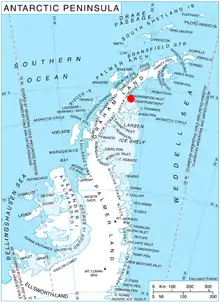 Location of Heros Peninsula in Graham Land, Antarctic Peninsula.