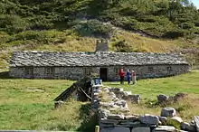 The Raudsjø Valley lies high in the mountains, at an elevation of 900 meters (3,000 ft),[7] and is difficult to access. Construction began on June 12, 1856. A team of 37 workers and 38 horses stayed for three weeks to build the large stone dairy building.[2][8] In addition, the dairy was equipped with a barn that could accommodate 100 cattle.[2][3] In addition to a cheese-making room with an open hearth, the dairy building also had a milk house and a storage room for the finished cheese (an Emmental cheese).[3]