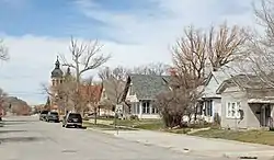 The Rawlins Residential Historic District abuts the north and east sides of the commercial district of Rawlins, Wyoming. United States. The area covers 15 blocks of small houses built between 1880 and 1915 in a variety of styles. The area was part of Union Pacific Railway property that was incorporated into Rawlins. One defining feature of the houses is a consistent use of locally quarried stone in foundations and landscape walls. Apart from the houses, St. Joseph's Catholic Church is also within the district. Styles include Queen Anne, cottage and bungalow style architecture.[2]