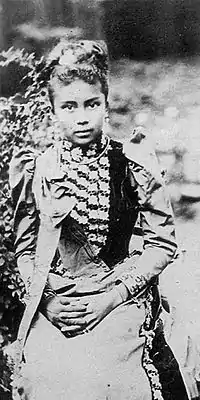 At the age of fourteen, during French occupation of Madagascar, Razafinandriamanitra became pregnant by a French soldier.[3] On 28 February 1897 the monarchy was abolished and France took complete control over the Malagasy government.[4] Razafinandriamanitra accompanied her mother and Princess Ramasindrazana to join her aunt, Queen Ranavalona III, in Toamasina after she was removed from the palace by French troops. Together they boarded the ship La Peyrouse and left for Réunion to live in exile.[5] They arrived in Pointe des Galets where they were met by an angry crowd. They were taken from the port city to Saint-Denis and took up residence in the Hotel de l'Europe. On 1 May 1897 Razafinandriamanitra gave birth to a daughter, Marie-Louise. Razafinandriamanitra died on 6 May 1897, five days after giving birth. She was buried in a cemetery in Saint-Denis.[6] Her daughter was later adopted by the queen and became the next heiress presumptive.[7]