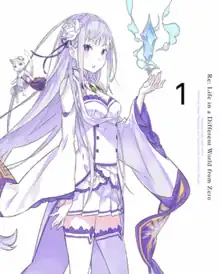 Re:Zero − Starting Life in Another World is an anime adaptation of a light novel series written by Tappei Nagatsuki and illustrated by Shinichirou Otsuka. The 25-episode series aired from April 4, 2016[lower-alpha 1] to September 19, 2016, with an extended 50-minute first episode. It was broadcast on TV Tokyo.[1][2] The series was simulcast by Crunchyroll.[3] The first opening theme song was "Redo" by Konomi Suzuki, and the first ending theme was "Styx Helix", while for episode 7 it was "Straight Bet", both performed by Myth & Roid.[4] The second opening theme song, titled "Paradisus-Paradoxum", is performed by Myth & Roid, while the second ending theme song, titled "Stay Alive", is performed by Rie Takahashi; for episode 14 it was "theater D", by Myth & Roid.[5] The first season adapts volumes one to nine of the light novel.