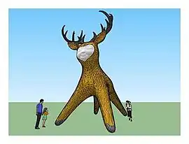 In articles providing updates about the sculpture's status, The Oregonian called the work "larger-than-life style highway art" and "Twilight Zone Bambi".[1][5][8] Angela Webber of the Daily Journal of Commerce expressed her love for the sculpture and disappointment in the public's reaction.[7] She wrote, "This makes me so sad. [...] Apparently, this giant baby-faced deer statue isn't pretty enough for Milwaukie. [...] I imagine the folks of Milwaukie just don't get it."[9]