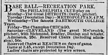 2. "The Opening Game: The Manayunk Ashlands Defeated by the Philadelphia nine". Philadelphia Inquirer. Philadelphia, Pennsylvania. p. 6.