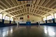 The main building of the Redfield School Historic District is an H-shaped single-story brick building, 15,000 sq ft, with a dormered gable roof. Additional buildings include a carriage house and well house dating to the 1910s. The district includes a 1958 mid-century modern gable-roofed cinder block school gymnasium, 10,391 sq ft, with all wood interior including Glulam wooden beams made in Magnolia, Arkansas. It also includes the athletic fields that lie adjacent to the school building.[2]