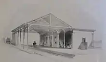 The original station was opened by the London and Brighton Railway on 12 July 1841 on a site to the south of the proposed junction with the South Eastern Main Line to Dover. The nearby market town was served by a horse-drawn omnibus service operated by the railway. This station was designed by the architect David Mocatta, and was one of a series of standardised modular buildings used by the railway.[5] It closed on 15 April 1844, when the L&BR began to share the SER Redhill and Reigate station and was demolished soon afterwards.