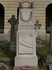 On 17 June 1915, Warneford received the award of Légion d'honneur from the French Army Commander in Chief, General Joffre. Following a celebratory lunch, Warneford travelled to the aerodrome at Buc in order to ferry an aircraft for delivery to the RNAS at Veurne. Having made one short test flight, he then flew a second flight, carrying an American journalist, Henry Beach Needham, as passenger. During a climb to 200 feet, the righthand wings collapsed leading to a catastrophic failure of the airframe. Accounts suggest that neither occupant was harnessed and were both thrown out of the aircraft, suffering fatal injuries. For Needham, death was instantaneous. Warneford died of his injuries on the way to hospital. He was buried at Brompton Cemetery,[10] London on 21 June 1915 in a ceremony attended by thousands of mourners.[11] The grave lies in front of the eastern colonnade.