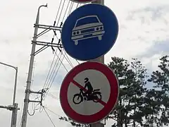 2. Motorcycles' access on expressways and semi-expressways (자동차전용도로 jadongcha jeonyong doro, literally 'motor vehicles only road') was prohibited by a Road Traffic Act amendment in 1992[6][7] | ||