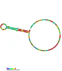 In plasmids, the regulatory region of repBA gene forms a pseudoknot. The repA gene, which encodes a protein likely to function as an initiator for replication, and the repB gene are translationally coupled. The leader sequence of the repA mRNA contains two complementary sequences of 8 bases. Base-pairing between these two sequences forms a pseudoknot which is essential for translation. The first of these complementary sequences is found within a stem-loop, which forms a target for RNAI. Binding of RNAI to this stem-loop inhibits pseudoknot formation and translation of RepA.[1][2]