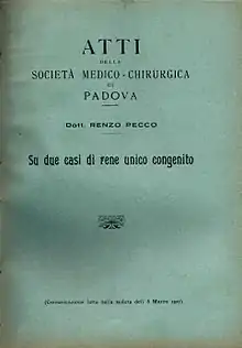 Article "On two cases of congenital solitary kidney" of Renzo Pecco