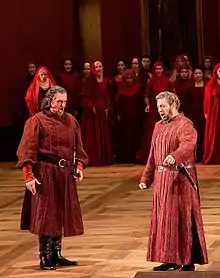 - ↑ "Review: In his 151st role, Plácido Domingo plays the 'wild cat' as old lion" by Mark Swed, Los Angeles Times, 6 May 2019